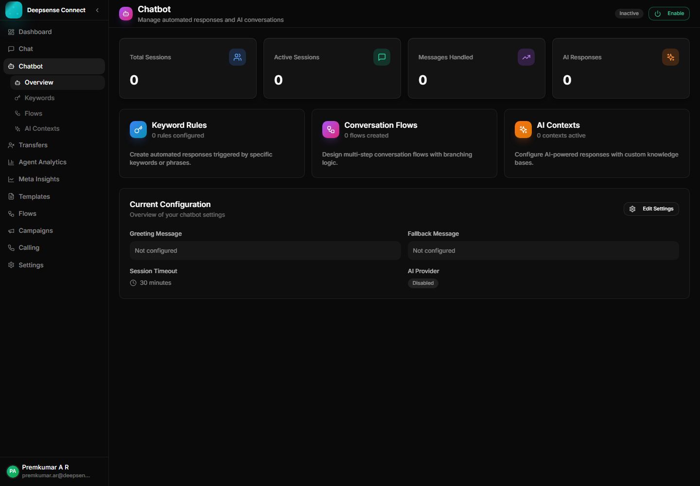 Chatbot flows become stronger when they connect with inbox operations, approved templates, campaign follow-ups, account control, and analytics.